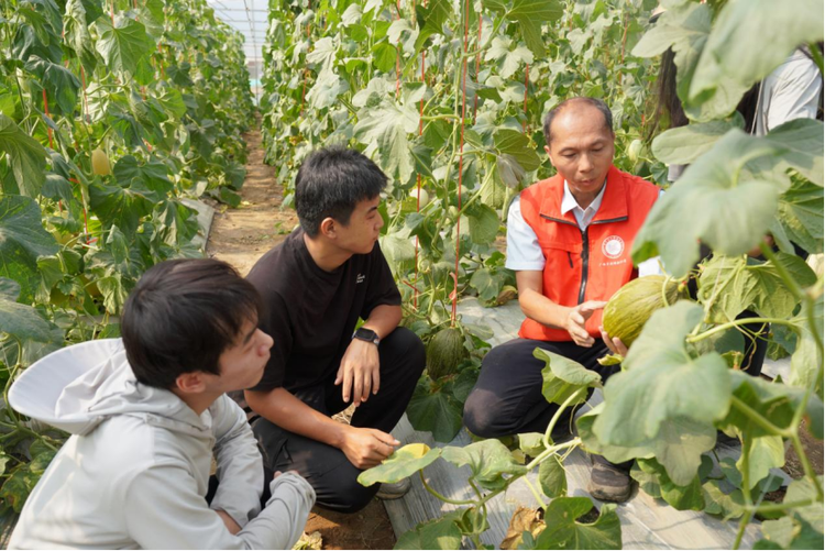 唐小付(右一)向学生传授网纹甜瓜种植技术 供图 565net必赢客户端