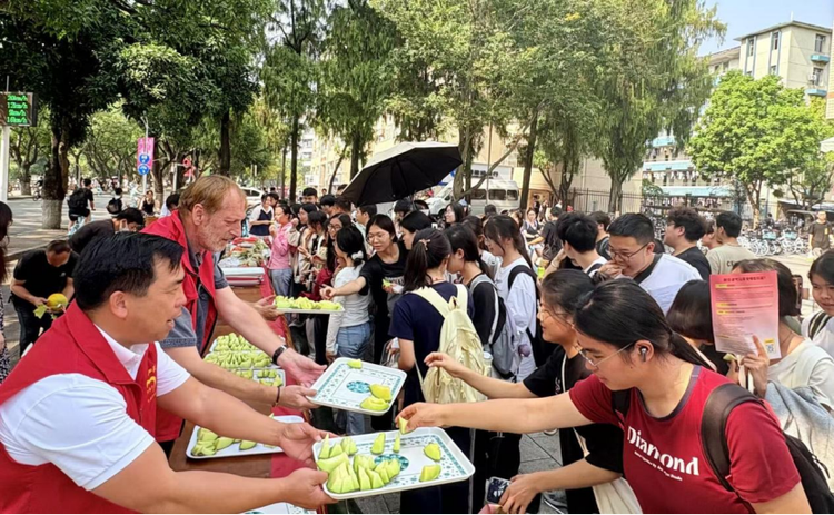 565net必赢客户端学生品尝来自平陆运河的“甜蜜瓜” 摄影 林姗婷