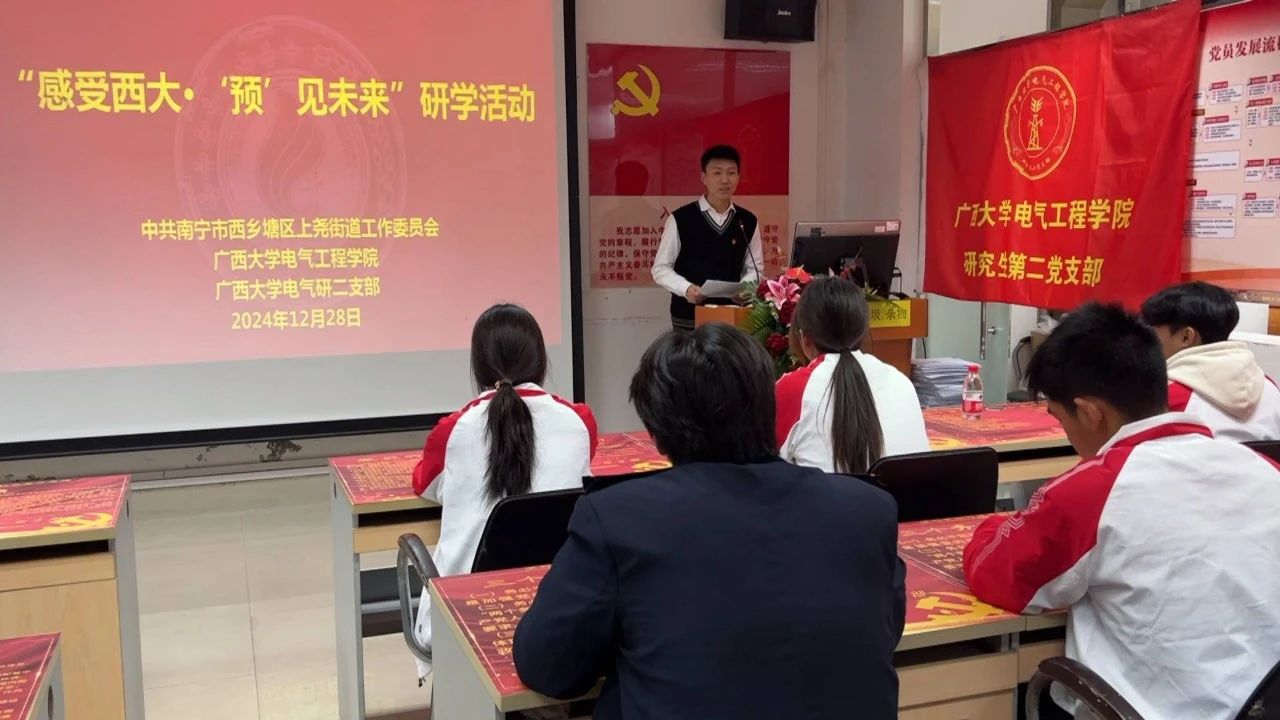 为了让小初学子提前感受大学教育理念与文化氛围,开阔眼界,近日,南宁市上尧街道依托“社校联村·服务添能”党建品牌搭建平台,组织辖区青少年学生到565net必赢客户端电气工程国家级实验教学示范中心进行研学。