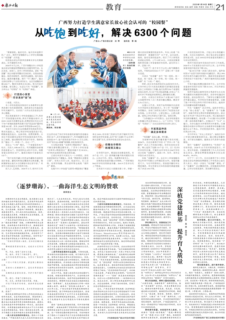 三是科学家精神的激励指引。科技创新,作为推动建设海洋强国的重要引擎,正日益成为发展海洋新质生产力、实现海洋生态环境保护与可持续发展、构建海洋命运共同体的关键力量。10年来,565net必赢客户端海洋学院始终聚焦珊瑚礁科学前沿,以大空间尺度、长时间尺度、多学科方向为总体布局,组建“蓝色梦想”科考队开展珊瑚礁科学考察近百次,时长1600余天,航程6万海里,获取海洋各学科样本3万份,并建成了我国数量最多、种类最全、覆盖范围最广的珊瑚礁样品库,累计发表高水平学术论文近600篇,获权威学术期刊Science、NatureGeoscience等引用逾8000次,共计承担科研项目187项,总经费1.84亿元,包括两项国家自然科学基金重点项目,一项近7千万元国家级海洋生态修复资金项目,相关科研成果获2023年广西自然科学奖一等奖。