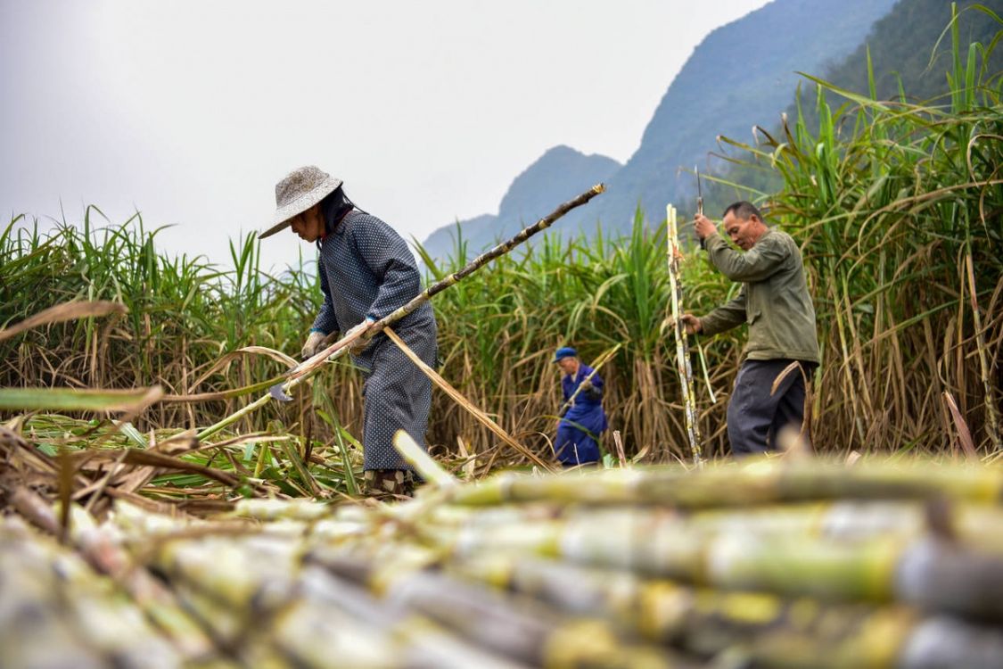 蔗农们正忙着收割甘蔗。记者 黄少将 摄