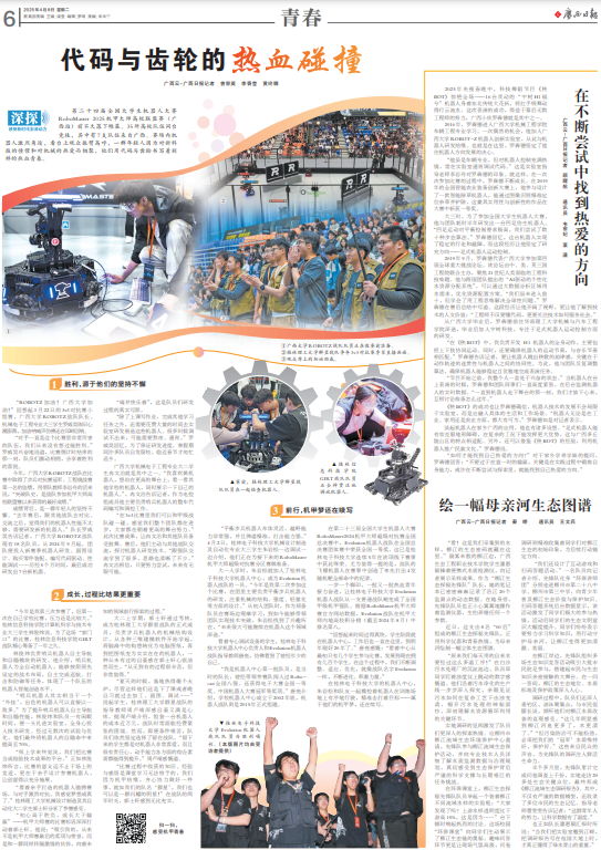 第二十四届全国大学生机器人大赛RoboMaster 2025机甲大师高校联盟赛(广西站)前不久落下帷幕。35所高校队伍同台竞技,其中有7支队伍来自广西。赛场内机器人激烈角逐,看台上观众振臂高呼,一群年轻人因为对新科技的憧憬和对机械的热爱而相聚,他们用代码与齿轮书写着别样的热血青春。