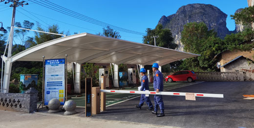 位于桂林阳朔县兴坪镇大河背村的电动汽车充电站。 莫晓姣/摄