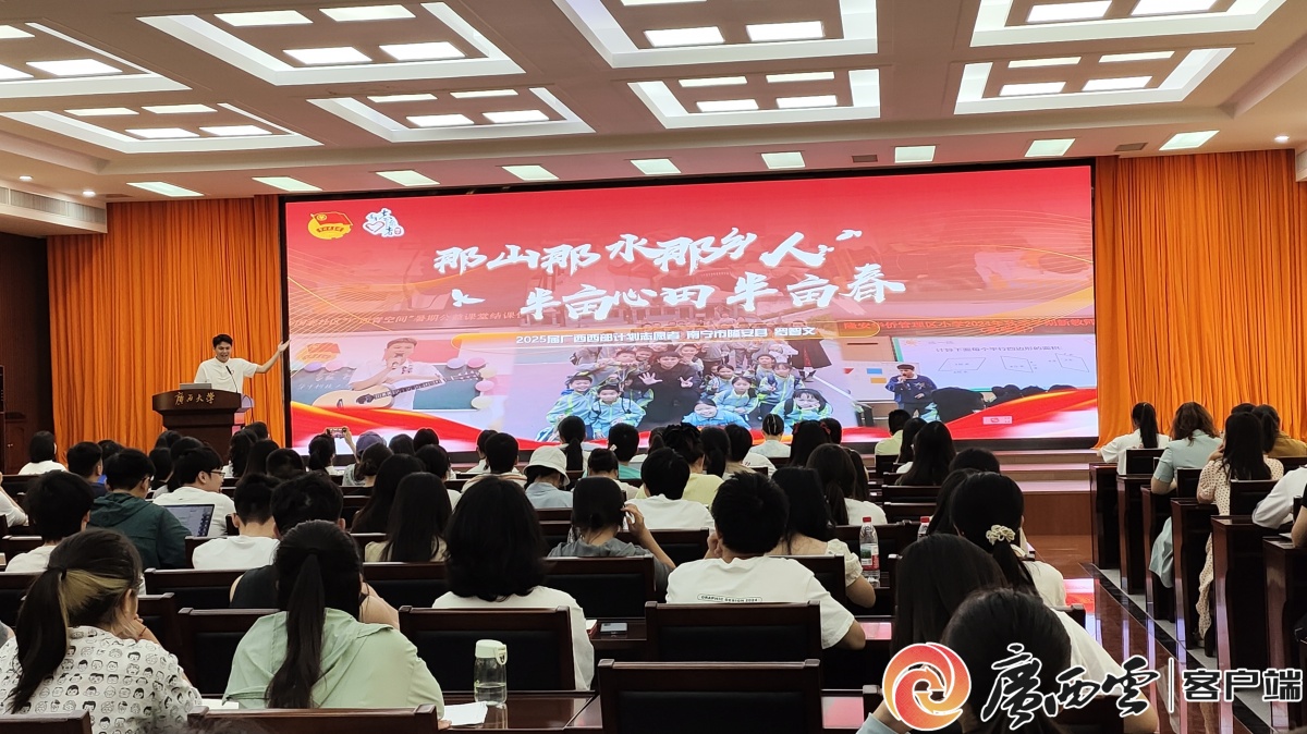 2024年西部计划志愿者黄艳琴,作为崇左市大新县首批西部计划卫国戍边专项青年护边指导员,分享了她用脚步丈量边境线的长度,以青年担当解决巡边工作中遇到的种种难题,将对祖国的热爱化作无畏的行动,鼓励同学们以家国情怀为弦,将个人青春融入国家发展。