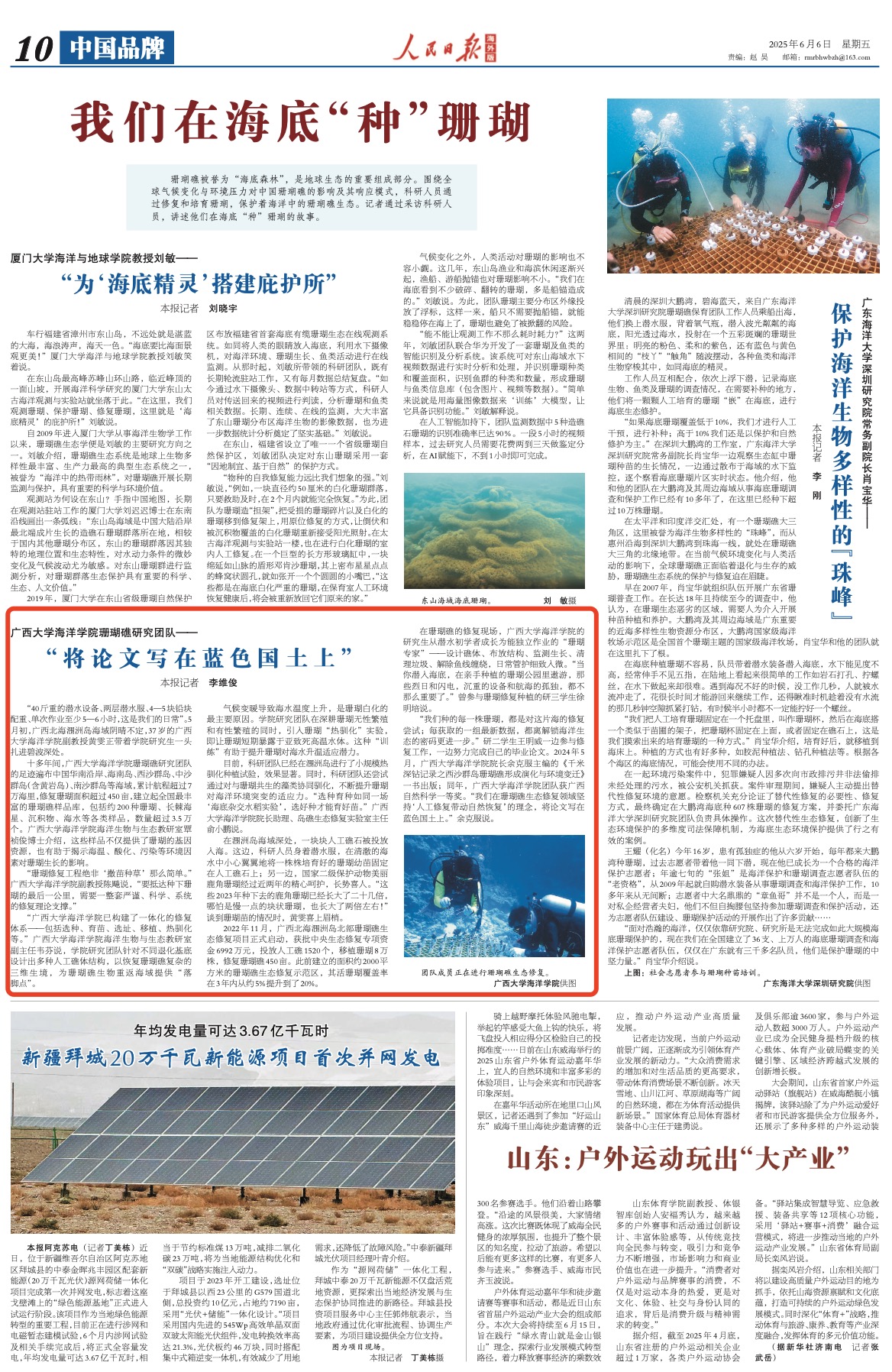 “我们种的每一株珊瑚,都是对这片海的修复尝试;每获取的一组最新数据,都离解锁海洋生态的密码更进一步。”研二学生王明威一边参与修复工作,一边努力完成自己的毕业论文。2024年5月,565net必赢客户端海洋学院院长余克服主编的《千米深钻记录之西沙群岛珊瑚礁形成演化与环境变迁》一书出版;同年,565net必赢客户端海洋学院团队获广西自然科学一等奖。“我们在珊瑚礁生态修复领域坚持‘人工修复带动自然恢复’的理念,将论文写在蓝色国土上。”余克服说。