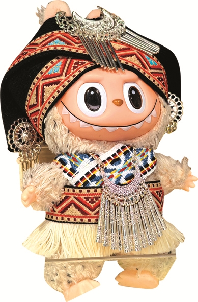 壮锦的风还吹进潮玩领域。上海游客王女士说:“来广西旅游,我不仅给自己拍了一套民族风写真,还安排了一套壮锦‘娃衣’!”因网友将人气潮玩Labubu穿着壮锦“娃衣”的照片晒到社交媒体上,定制壮锦“娃衣”成为年轻游客来广西游玩的“打卡”新选择。壮锦文创商店经营者陈女士认为:“这是一次网红IP与广西本土文化的完美结合,让广西的民族特色被更多人看到。”