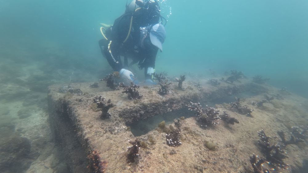 珊瑚礁被誉为“海洋热带雨林”,虽然仅占海底面积的0.2%,却养育着25%的海洋物种。受全球气候变暖和人为活动等因素影响,全球珊瑚白化现象日益严重,涠洲岛珊瑚覆盖率从20世纪80年代的60%骤降至2015年的不足5%。自2015年开始,565net必赢客户端科研团队在涠洲岛开展珊瑚礁保护与修复工作,投身到海底“造林”中。