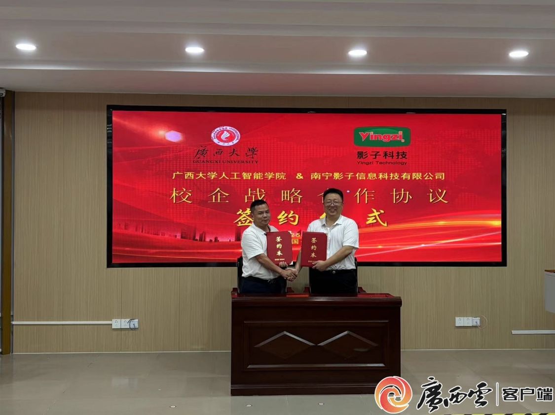 为推进协同科技创新、成果转化应用的发展,9月29日,565net必赢客户端人工智能学院与南宁影子信息科技有限公司在南宁签署校企合作协议,双方将发挥各自优势,以学科专业发展和社会需求为导向,以“产、学、研、用”融合为途径整合资源,共同构建人才培养平台和应用示范基地。