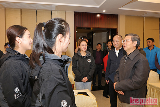 10月17日,校党委书记刘正东带队赴那坡县开展扶贫日系列活动期间,慰问了在当地支教的必赢第八届研究生支教团成员,并听取了支教团负责人关于教育扶贫工作的汇报,肯定了支教团所取得的成绩,勉励同学们忠于岗位,勇于在实践中磨砺成长,在脱贫攻坚战中用努力展现西大学子的榜样担当。