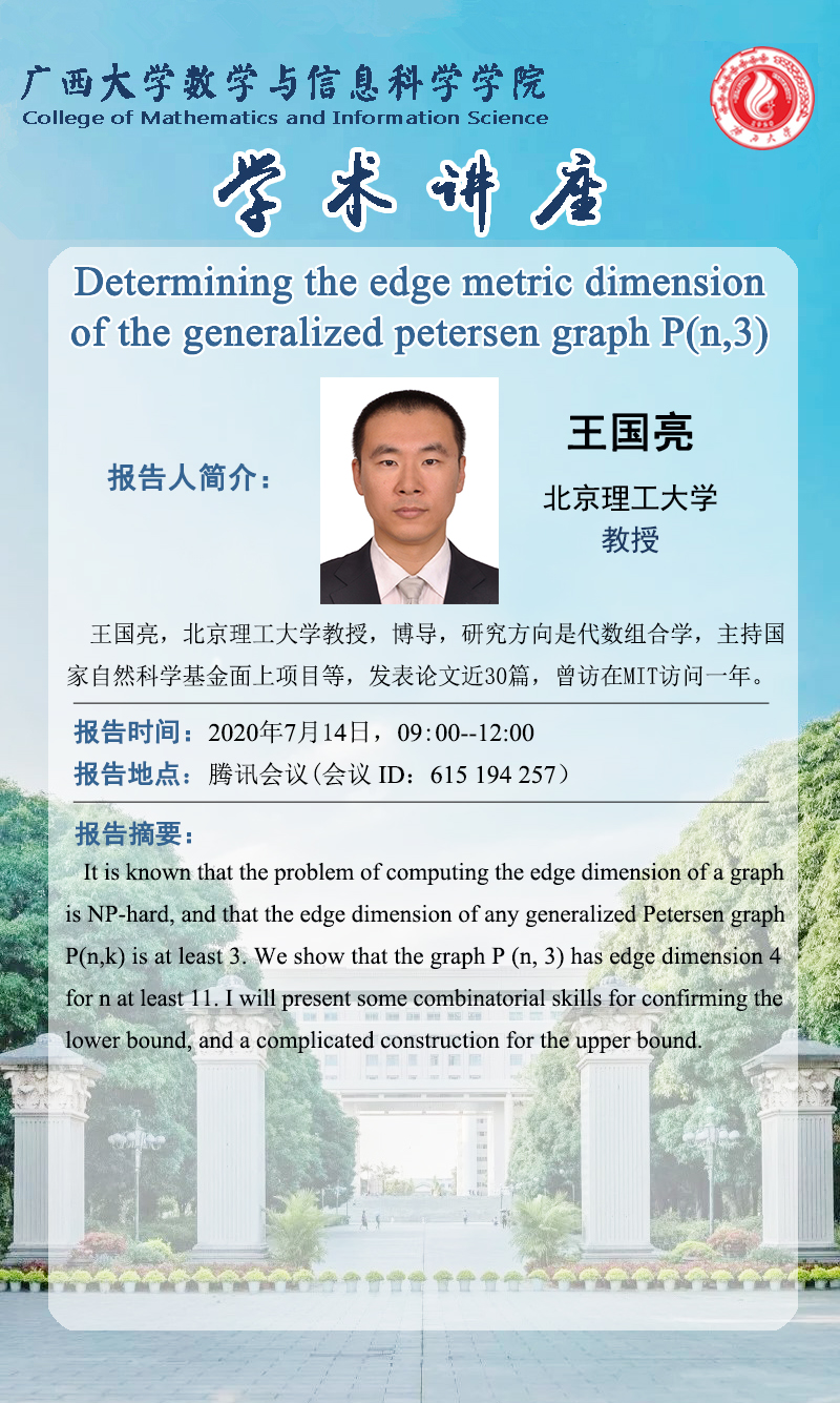 数信学院学术报告:Determining the edge metric dimension of the generalized petersen graph P(n,3)
