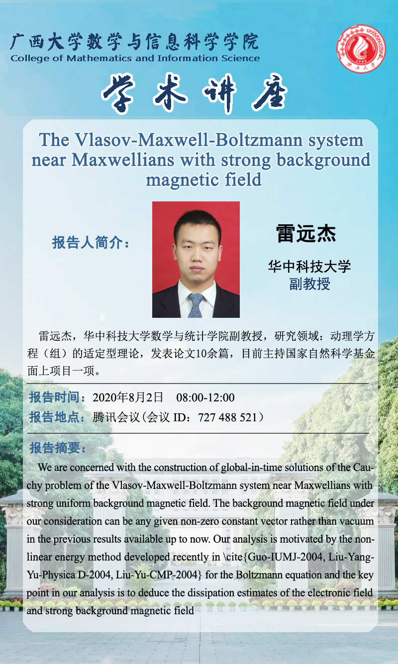 上一条:数信学院学术报告:Global strong solutions to the Cauchy problem for planar non-resistive magnetohydrodynamic equations with large initial data