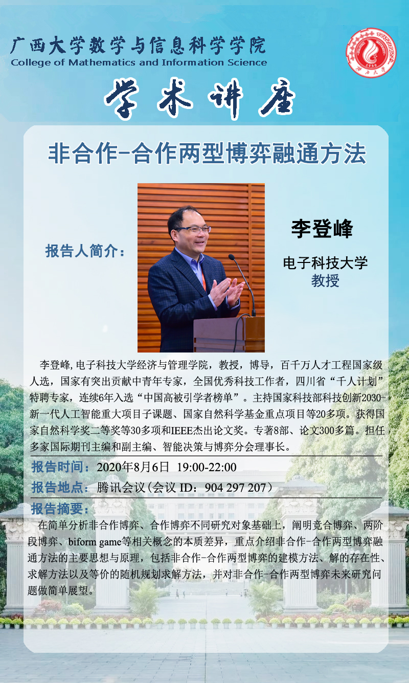 数信学院学术报告:非合作-合作两型博弈融通方法