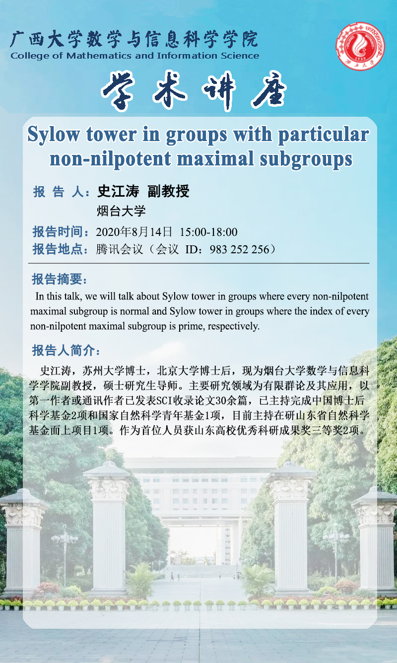 数信学院学术报告:Sylow tower in groups with particular non-nilpotent maximal subgroups