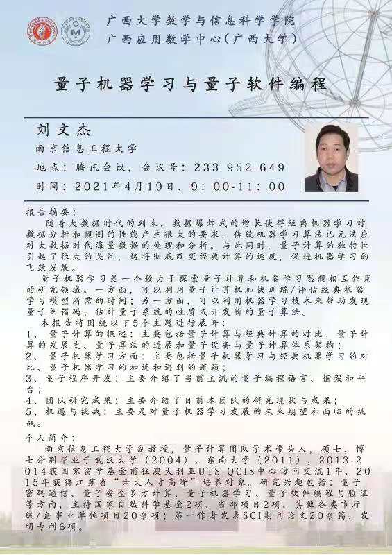数学与信息科学学院学术报告:量子机器学习与量子软件编程