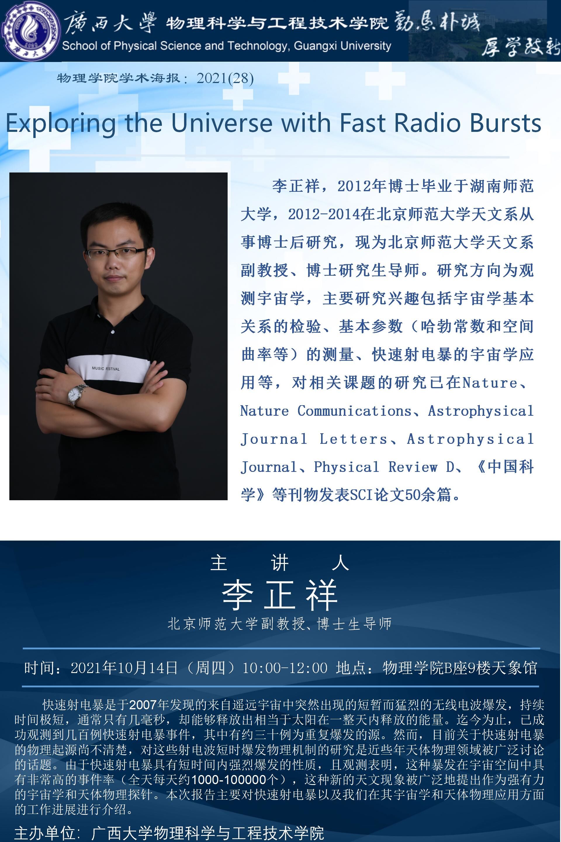 物理科学与工程技术学院学术报告:Exploring the Universe with Fast Radio Bursts