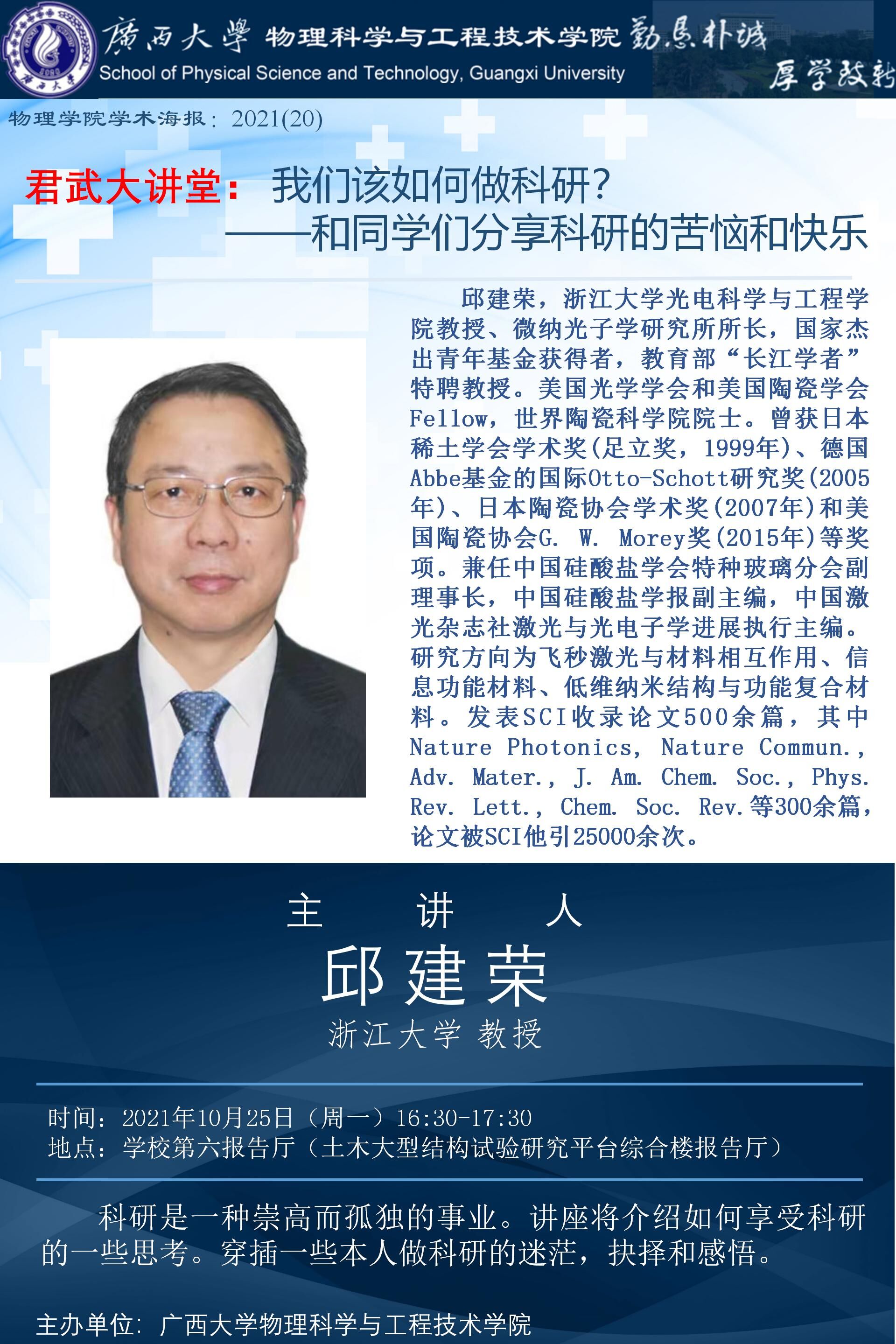 物理学院君武大讲坛: 我们该如何做科研?
