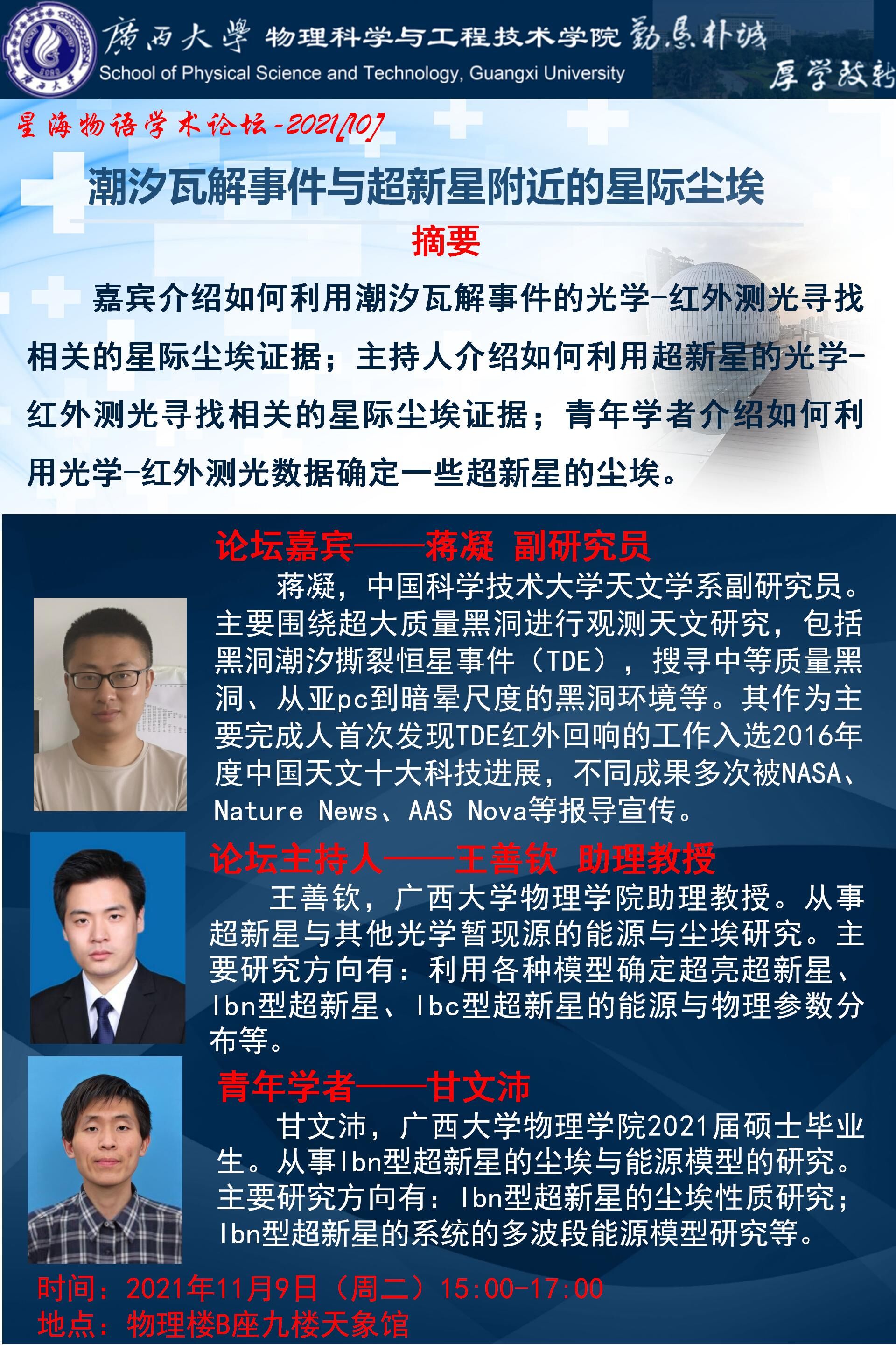 物理学院星海物语学术论坛(第十期):潮汐瓦解事件与超新星附近的星际尘埃
