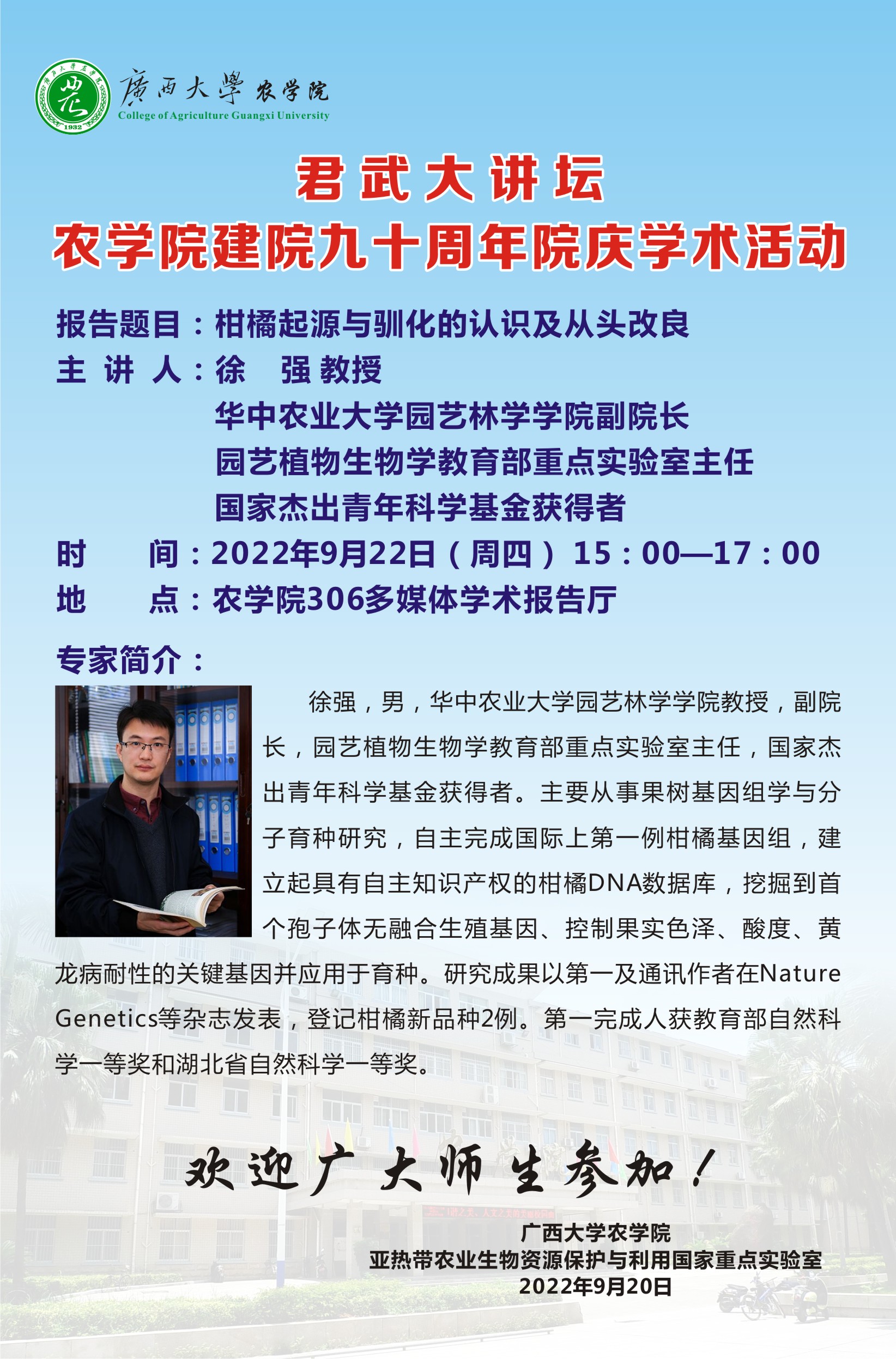 【地点】农学院306多媒体学术报告厅