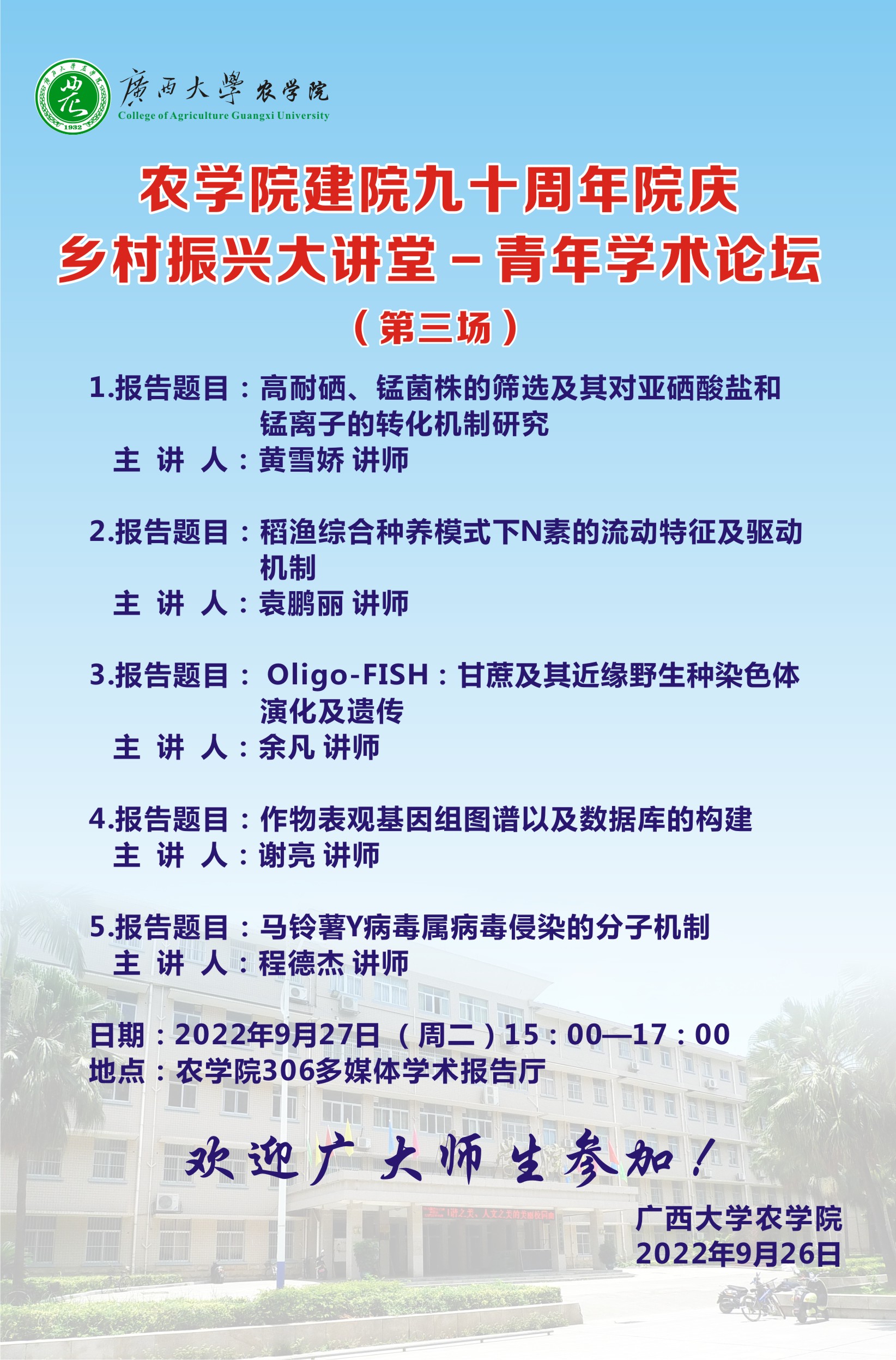 农学院建院九十周年院庆活动乡村振兴大讲堂-青年学术论坛(第三场)
