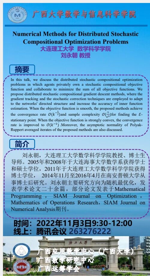 上一条:数学与信息科学学院/广西应用数学中心(565net必赢客户端)学术报告:An A.-spectral Erdos-Sos theorem and some related problems