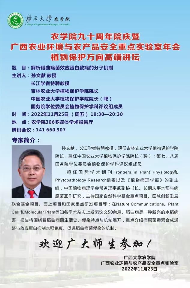 乡村振兴大讲堂 广西农业环境与农产品安全重点实验室年会 植物保护方向高端讲坛