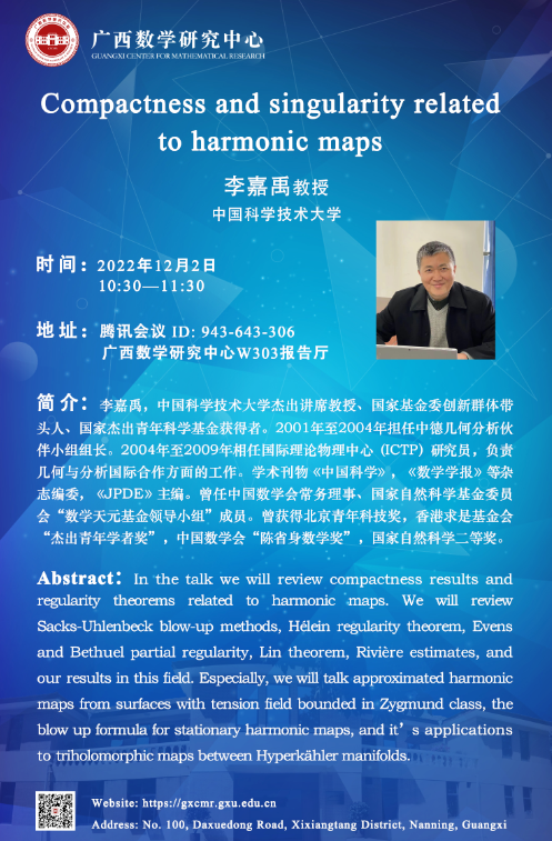 广西数学研究中心学术报告:Compactness and singularity related to harmonic maps