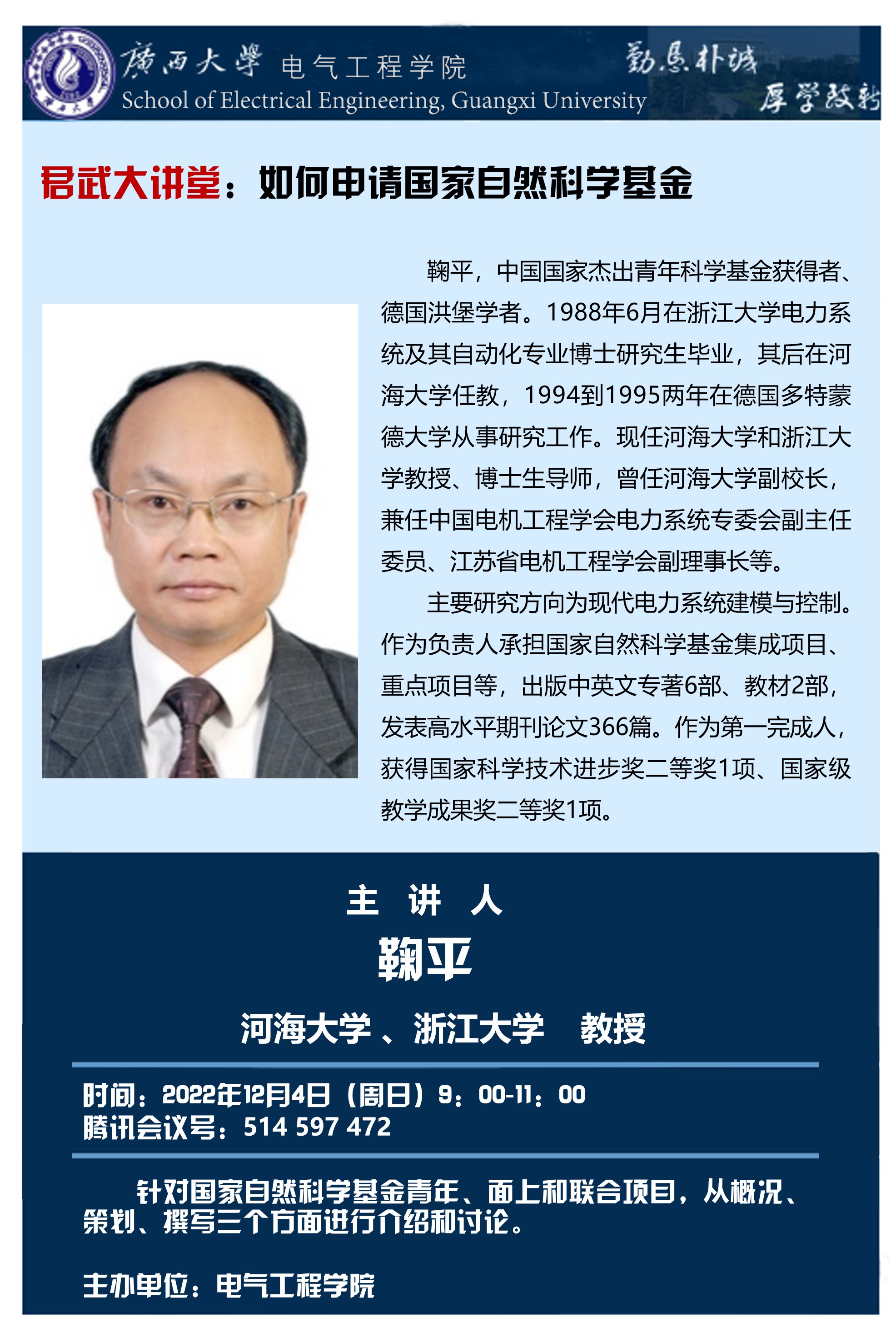 565net必赢客户端电气工程学院学术报告:如何申请国家自然科学基金