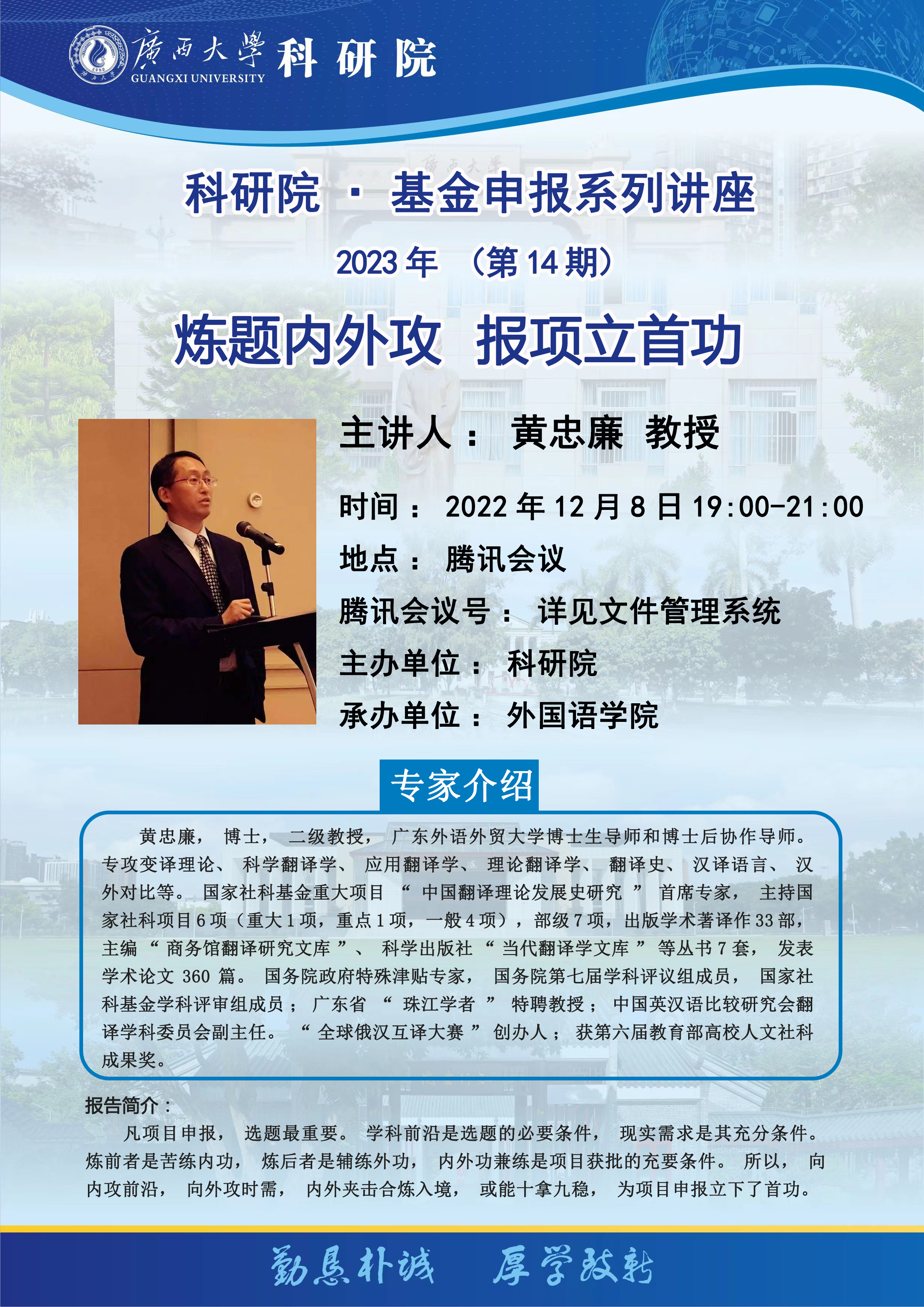科研院·基金申报系列讲座2023年(第14期)炼题内外攻 报项立首功