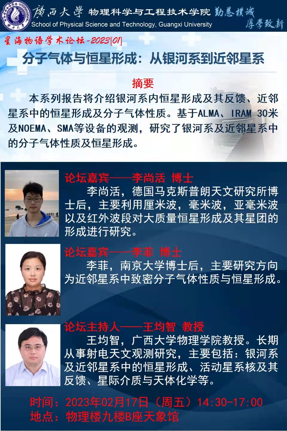 物理学院2023年星海物语学术论坛(第一期):分子气体与恒星形成:从银河系到近邻星系