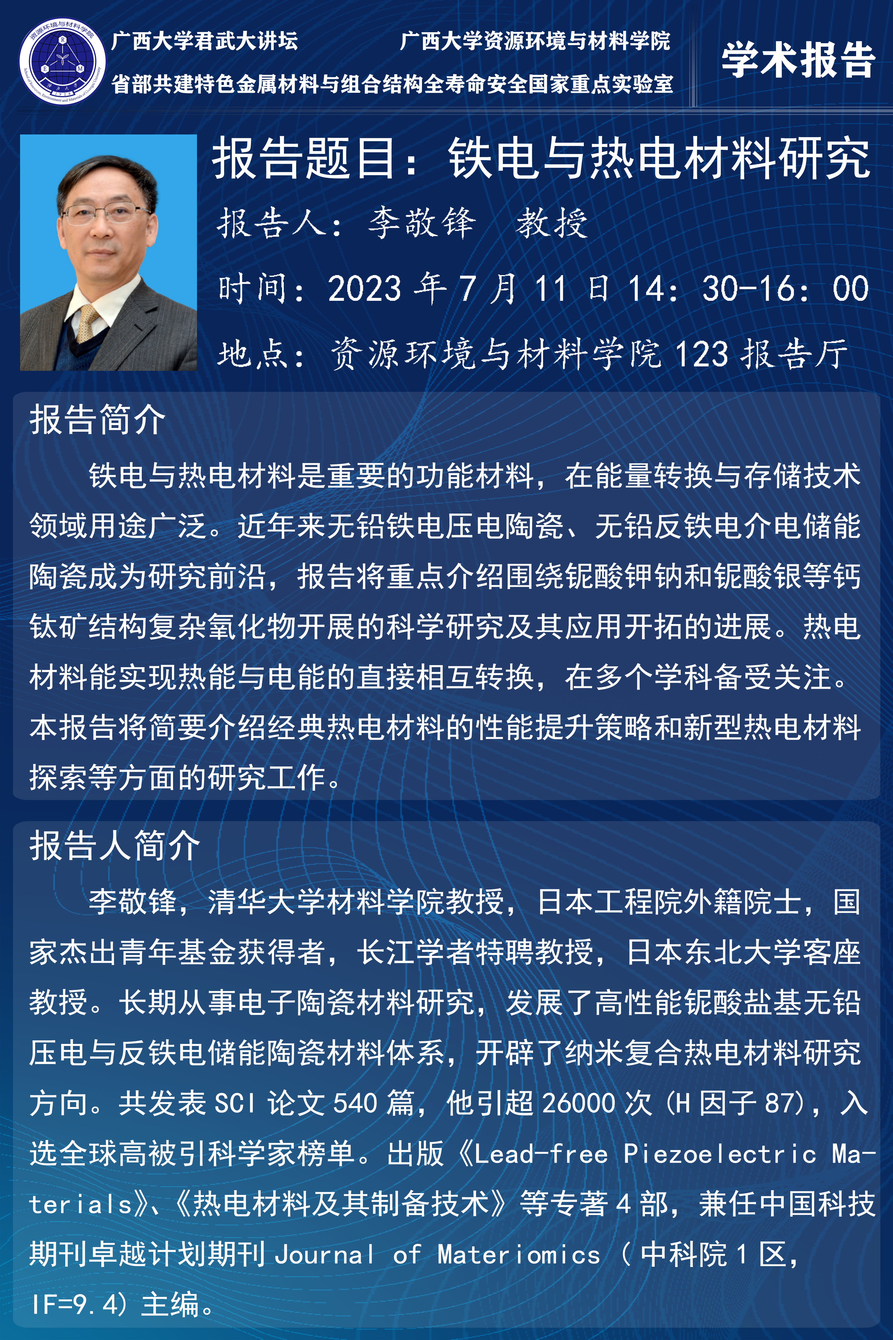 565net必赢客户端君武大讲坛:铁电与热电材料研究