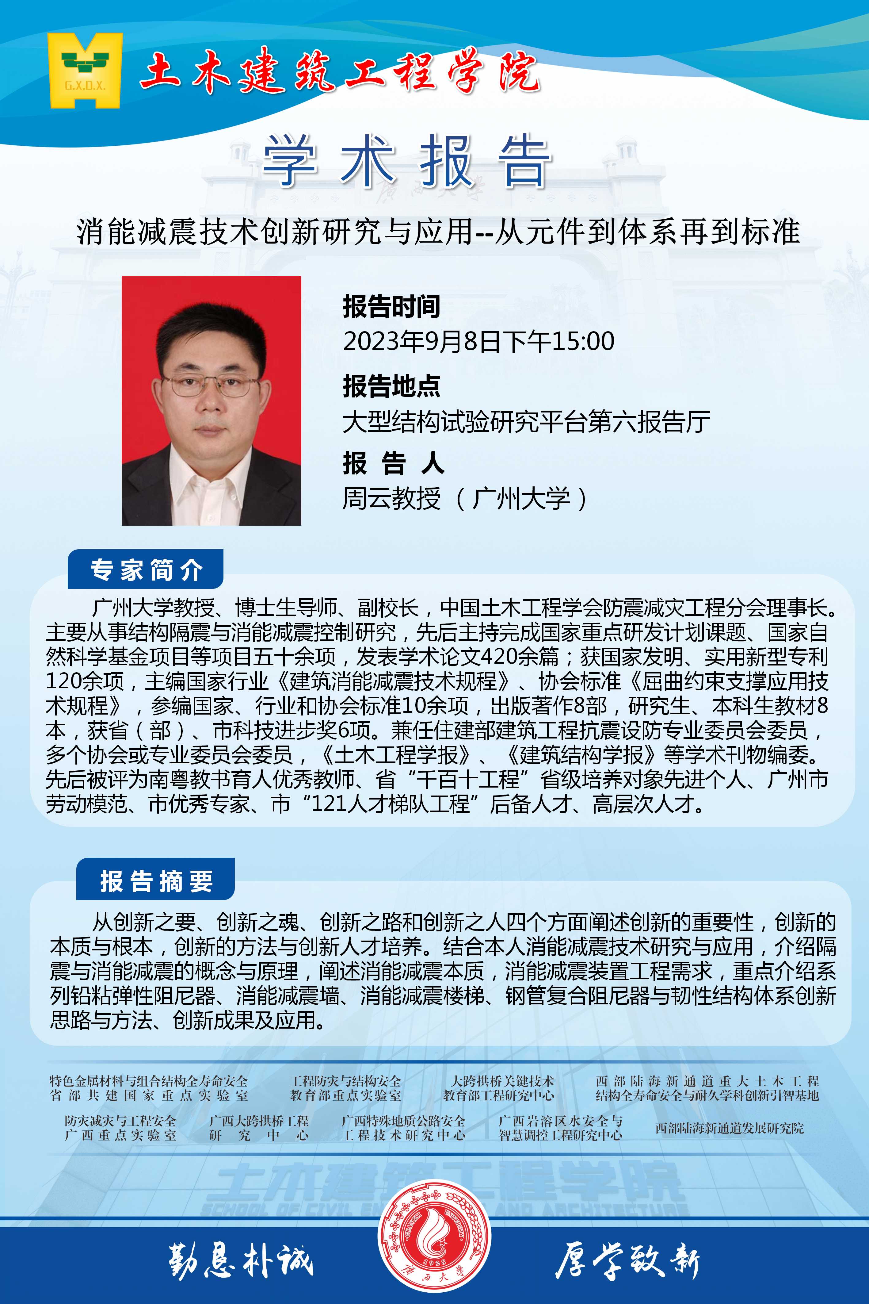 土木学院学术报告:消能减震技术创新研究与应用--从元件到体系再到标准