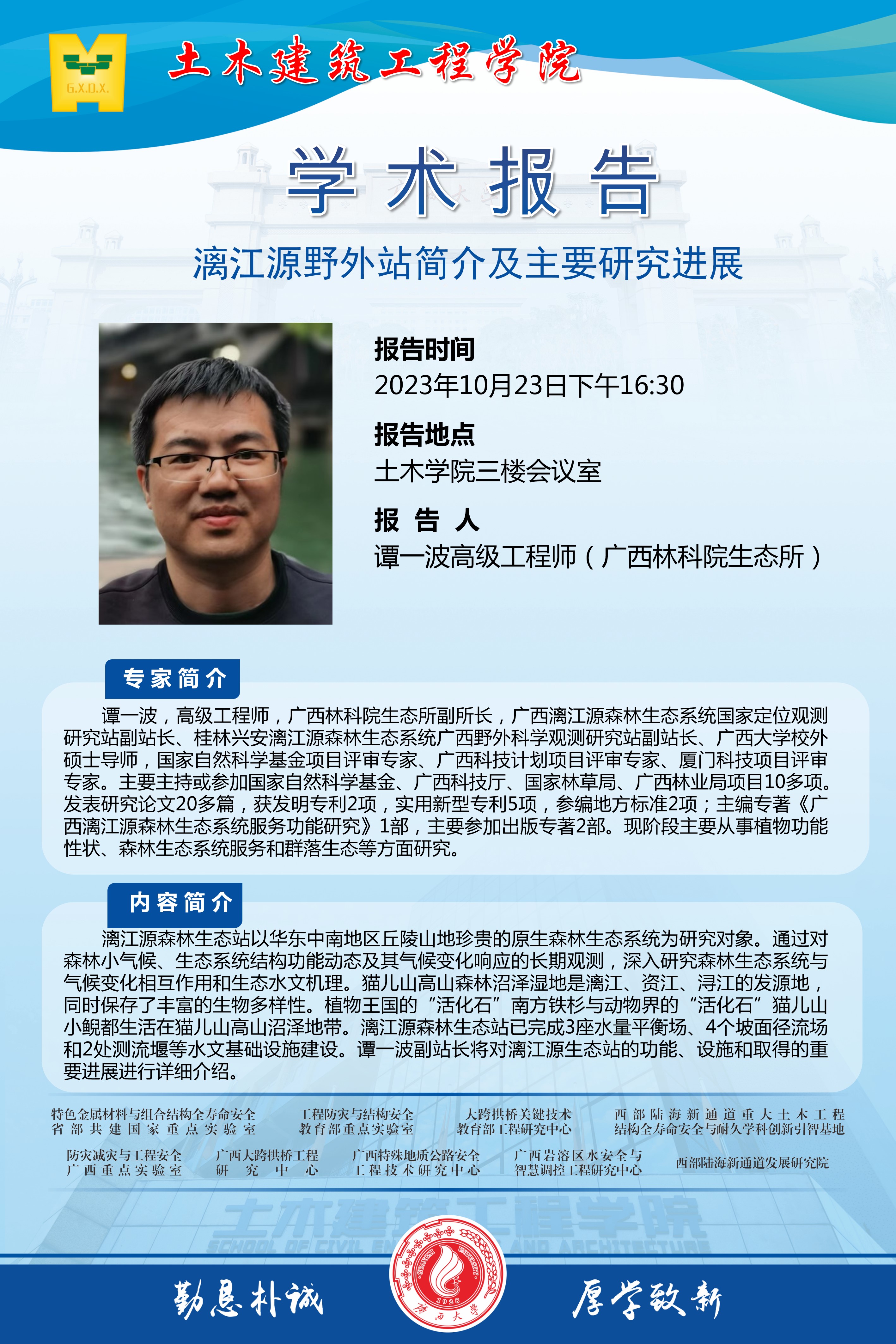 土木建筑工程学院学术报告:漓江源野外站简介及主要研究进展