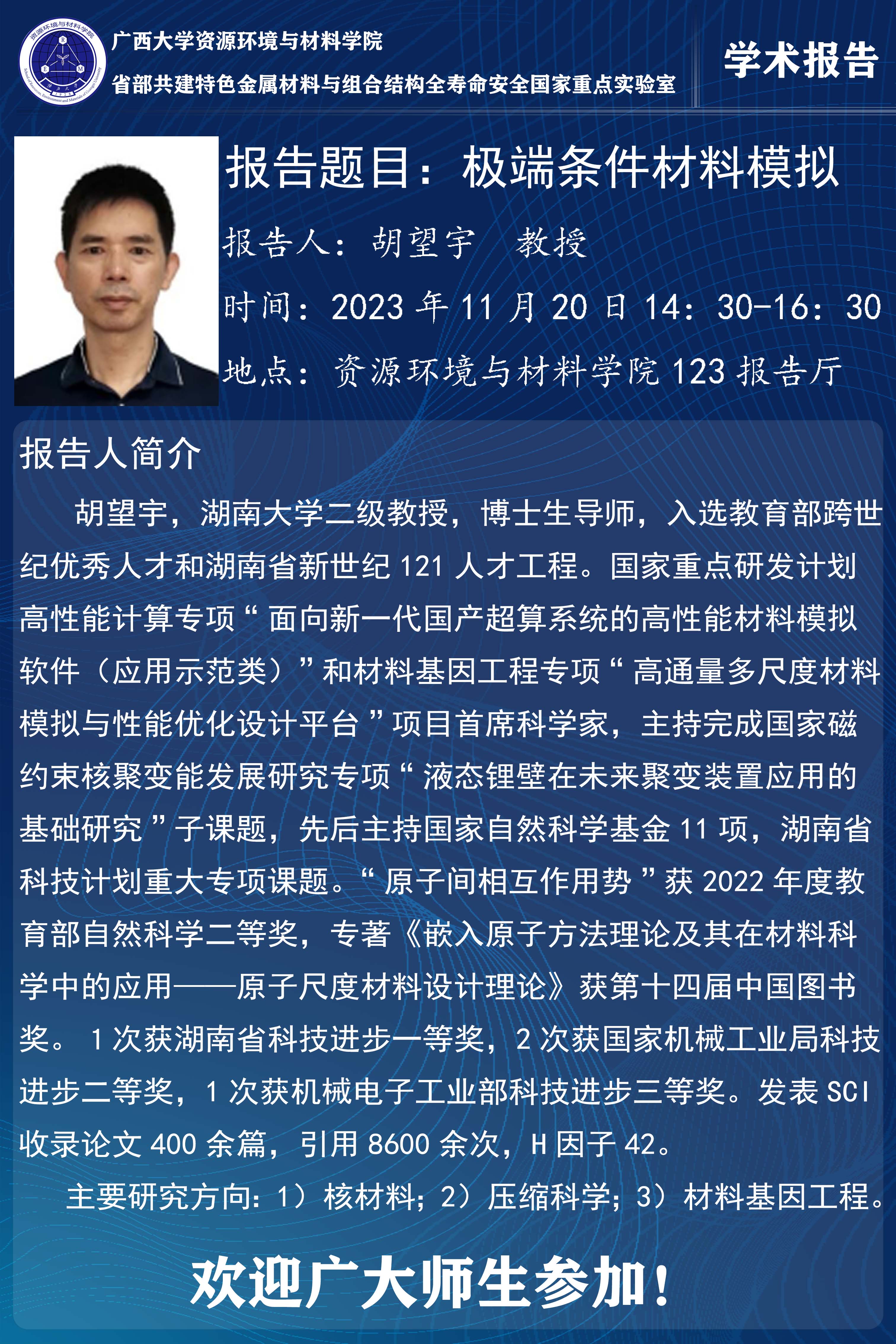 资源环境与材料学院学术报告 :极端条件材料模拟
