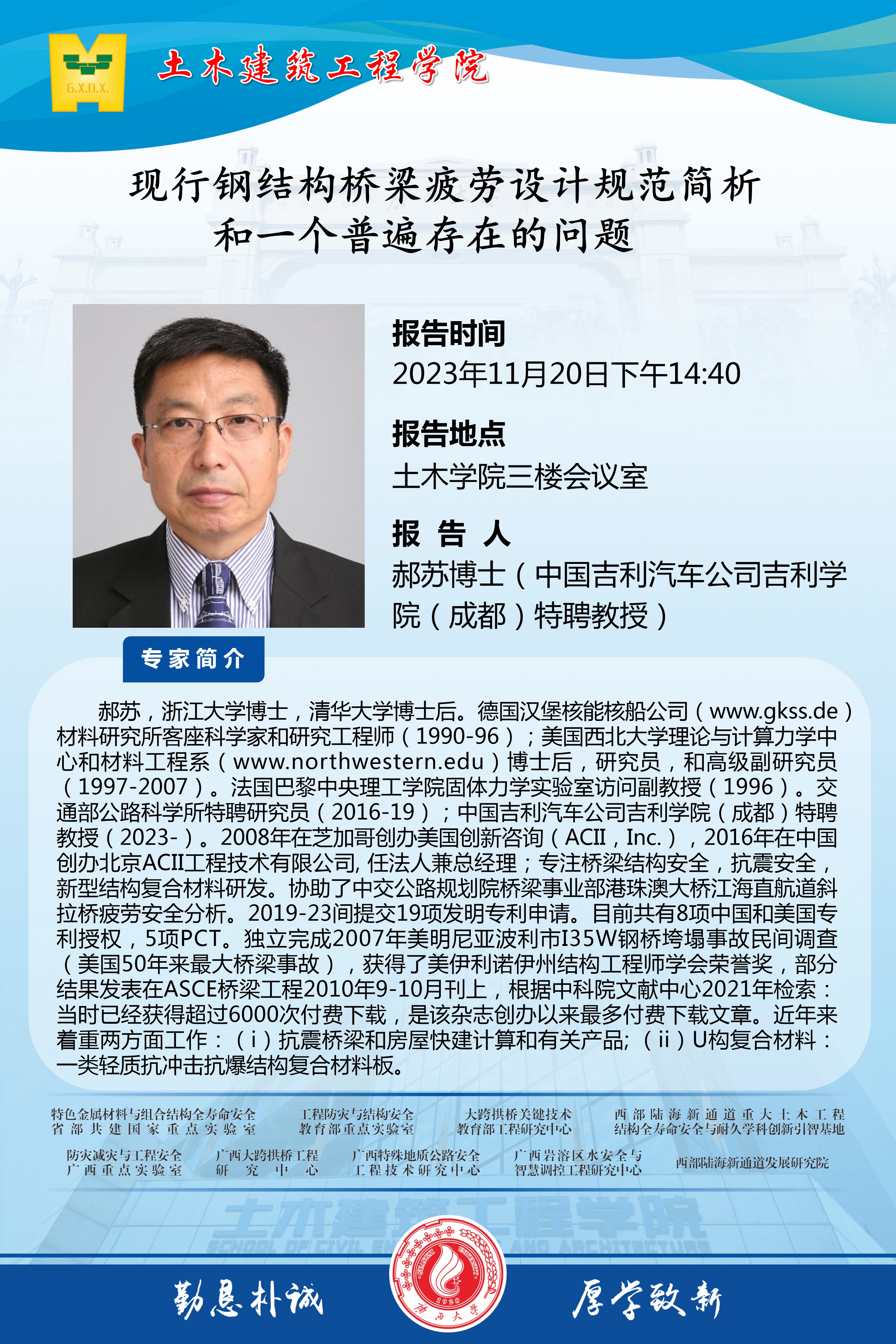 土木建筑工程学院学术报告:现行钢结构桥梁疲劳设计规范简析和一个普遍存在的问题