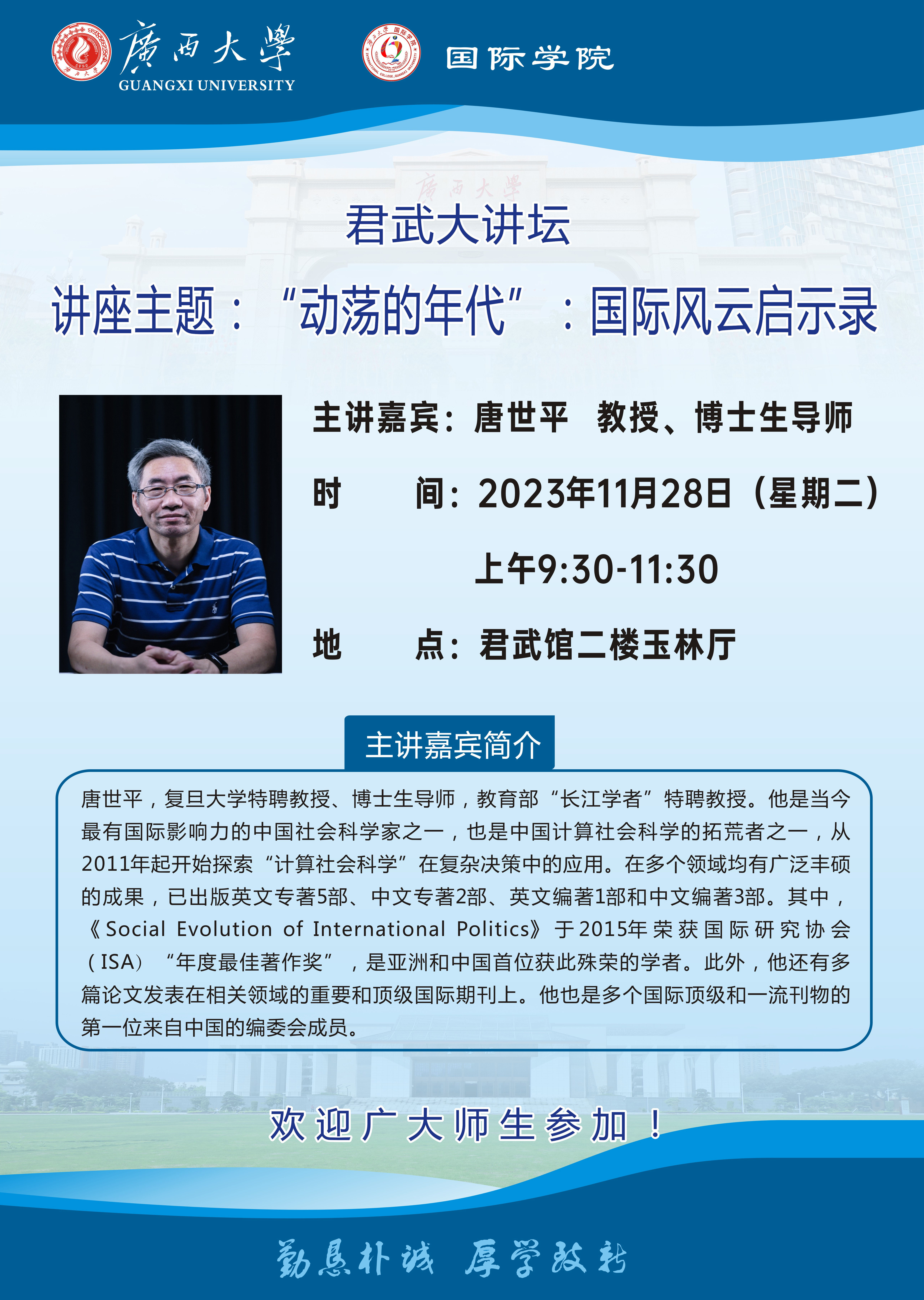 君武大讲坛:“动荡的年代”——国际风云启示录