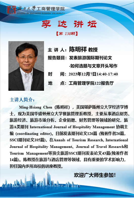 李达讲坛 第129期:发表旅游国际期刊论文——思维方法和技巧