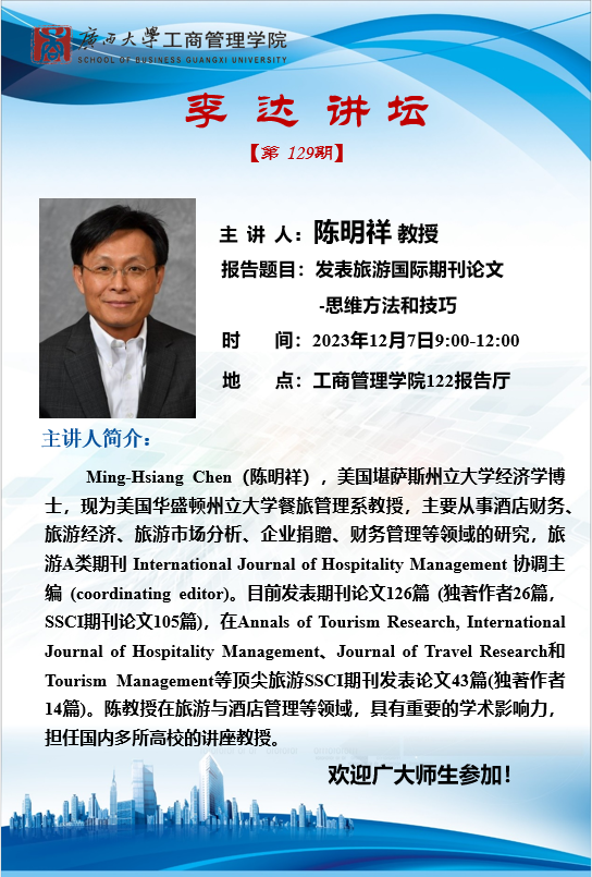 李达讲坛 第129期:发表旅游国际期刊论文——思维方法和技巧
