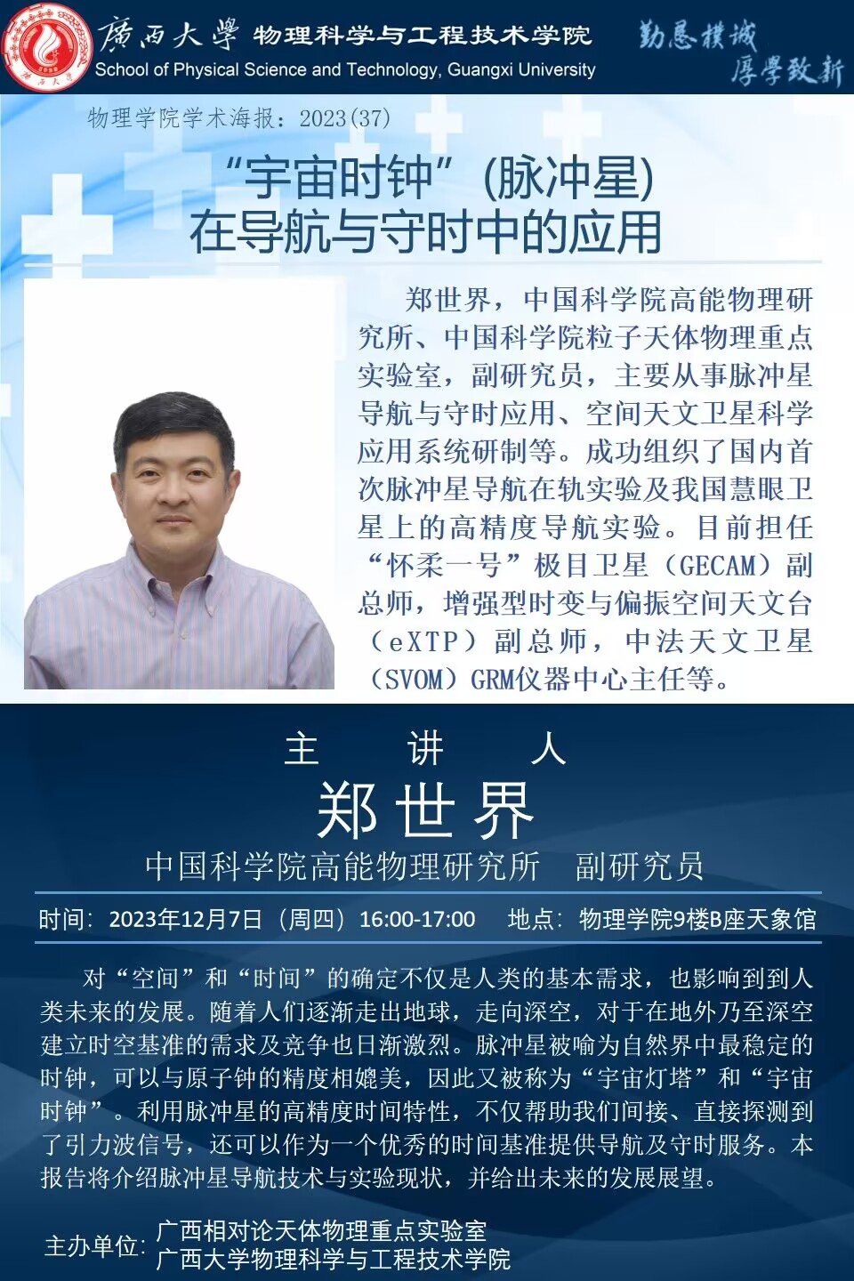 物理学院2023年学术报告系列之37:“宇宙时钟”(脉冲星)在导航与守时中的应用