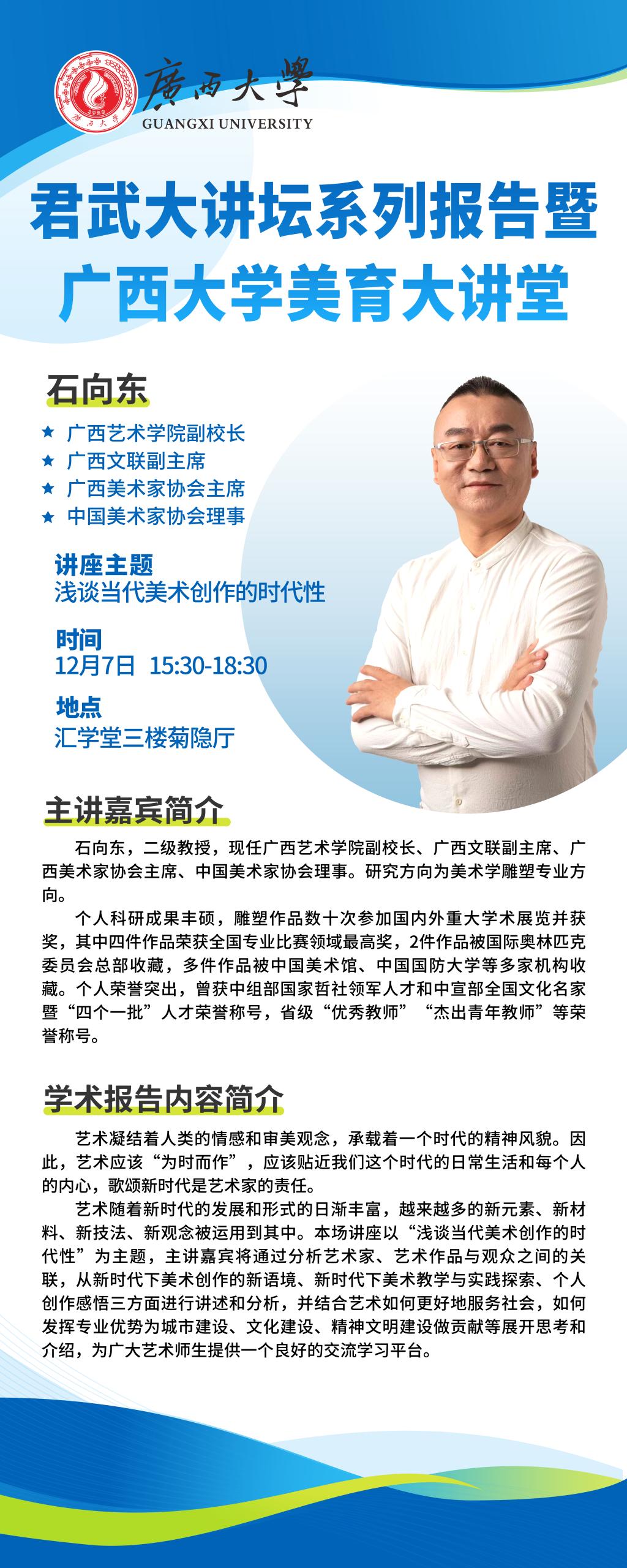 石向东 广西艺术学院副校长、广西文联副主席、广西美术家协会主席、中国美术家协会理事