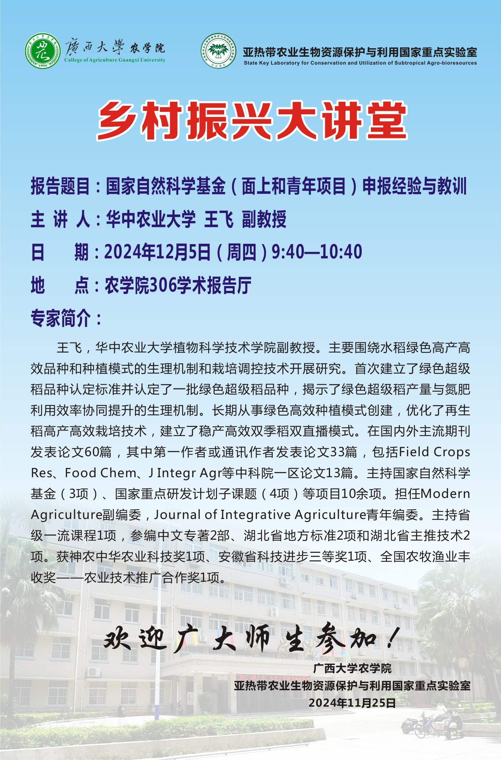 乡村振兴大讲堂:国家自然科学基金(面上和青年项目)申报经验与教训