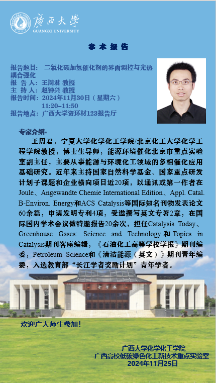 化学化工学院学术报告 :二氧化碳加氢催化剂的界面调控与光热耦合强化