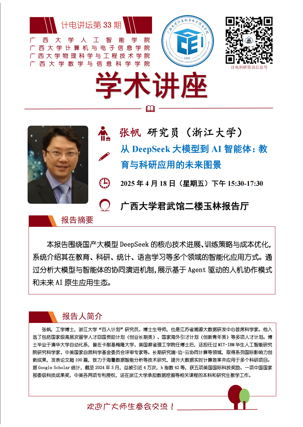 “计电讲坛”系列活动第33期 :从 DeepSeek 大模型到 AI 智能体——教育与科研应用的未来图景
