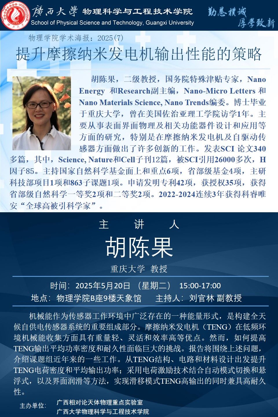 物理科学与工程技术学院学术报告:提升摩擦纳米发电机输出性能的策略