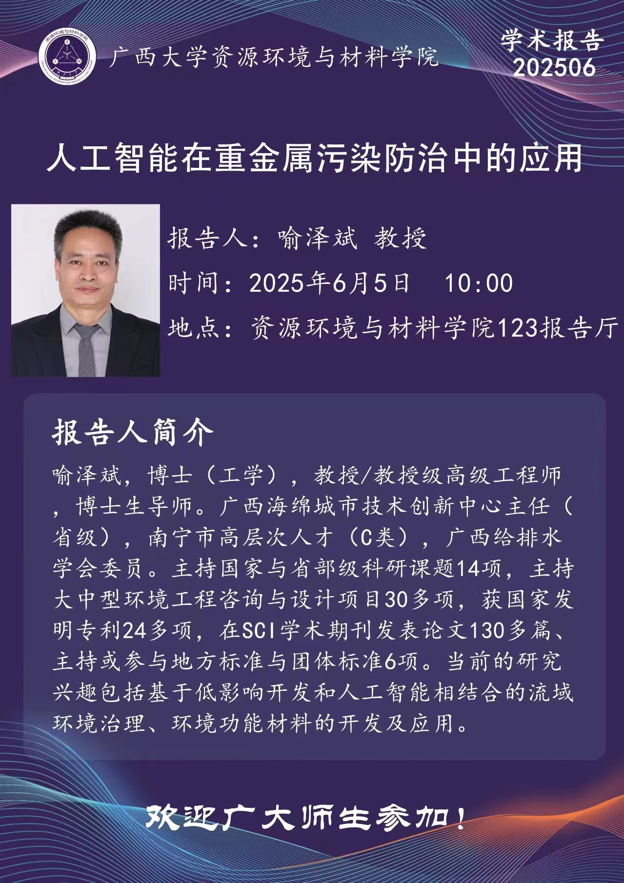 资源环境与材料学院学术报告:人工智能在重金属污染防治中的应用