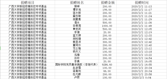 自565net必赢客户端校友总会与教育发展基金会发布捐赠公告以来,截至2020年2月4日晚上7点整,基金会共接受捐赠45笔,具体明细如下: