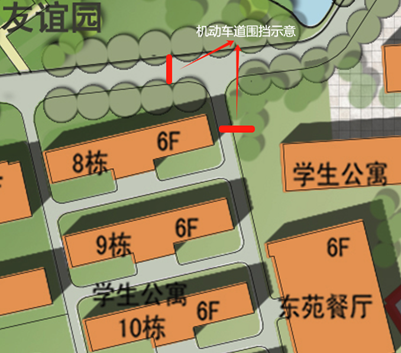 关于东校园学生宿舍8栋东侧、北侧机动车道施工的通知